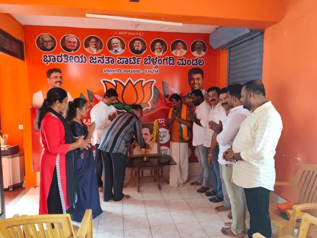 ಬೆಳ್ತಂಗಡಿ :ಭಾರತೀಯ ಜನತಾ ಪಾರ್ಟಿ ಬೆಳ್ತಂಗಡಿ ಮಂಡಲ ವತಿಯಿಂದ ಅಪ್ರತಿಮ ಸಂಘಟಕ, ಏಕಾತ್ಮ ಮಾನವತೆಯ ಪ್ರತಿಪಾದಕರು, ಅಗ್ರಪಂಕ್ತಿಯ ಲೇಖಕರು, ರಾಷ್ಟ್ರವಾದಿ, ದಾರ್ಶನಿಕರು, ಮಾರ್ಗದರ್ಶಕರು ಜನ ಸಂಘದ ಸಂಸ್ಥಾಪಕರಾದ ಪಂಡಿತ್ ದೀನ್ ದಯಾಳ್ ಉಪಾಧ್ಯಾಯರ ಜನ್ಮದಿನಾಚರಣೆಯನ್ನು ಸೆ 25 ರಂದು ಪಕ್ಷದ ಕಚೇರಿಯಲ್ಲಿ ಆಚರಿಸಲಾಯಿತು. ದೀನ್ ದಯಾಳ್ ಉಪಾಧ್ಯಯರ ಭಾವಚಿತ್ರಕ್ಕೆ ಪುಷ್ಪಾರ್ಚನೆ ಸಲ್ಲಿಸಿ, ಸಿಹಿ ಹಂಚಲಾಯಿತು. ಬೆಳ್ತಂಗಡಿ ಬಿಜೆಪಿ ಮಂಡಲಾಧ್ಯಕ್ಷರಾದ ಶ್ರೀನಿವಾಸ್ ರಾವ್ ಧರ್ಮಸ್ಥಳ ಇವರು ದೀನ್ ದಯಾಳ್ ಉಪಾಧ್ಯಾಯರ ವ್ಯಕ್ತಿತ್ವ, ಸಾಧನೆಗಳ ಬಗ್ಗೆ ಸಂದರ್ಭೋಚಿತವಾಗಿ ಮಾತಾಡಿದರು. ಈ ಸಂದರ್ಭದಲ್ಲಿ ಮಂಡಲ ಪ್ರಧಾನ ಕಾರ್ಯದರ್ಶಿ ಜಯಾನಂದ ಗೌಡ ಪ್ರಜ್ವಲ್, ಜಿಲ್ಲಾ ಕಾರ್ಯದರ್ಶಿ ಸೀತಾರಾಮ್ ಬೆಳಾಲು, ರೈತ ಮೋರ್ಚಾ ಜಿಲ್ಲಾಧ್ಯಕ್ಷರಾದ ಗಣೇಶ್ ಗೌಡ ನಾವೂರು, ಮಹಿಳಾ ಮೋರ್ಚಾ ಪ್ರಧಾನ ಕಾರ್ಯದರ್ಶಿ ಸೇವಾ ಪಾಕ್ಷಿಕದ ಸಂಚಾಲಕರಾದ ಶ್ರೀಮತಿ ಪೂರ್ಣಿಮಾ ಜಯಂತ್, ಮಂಡಲ ಕಾರ್ಯದರ್ಶಿಗಳಾದ ಸುಂದರ್ ಹೆಗ್ಡೆ, ಶ್ರೀಮತಿ ಆಶಾ ಲಾಯಿಲ, ಪ್ರಭಾಕರ ಆಚಾರ್,ನಗರ ಮಹಾಶಕ್ತಿ ಕೇಂದ್ರ ಅಧ್ಯಕ್ಷರಾದ ರಾಜೇಶ್ ಪ್ರಭು, ಲಾಯಿಲ ಮಹಾಶಕ್ತಿ ಕೇಂದ್ರ ಪ್ರಧಾನ ಕಾರ್ಯದರ್ಶಿ ಅರವಿಂದ್ ಲಾಯಿಲ ಹಾಗೂ ಪ್ರಮುಖರು ಉಪಸ್ಥಿತರಿದ್ದರು. ಶ್ರೀಮತಿ ಪೂರ್ಣಿಮಾ ಜಯಂತ್ ಸ್ವಾಗತಿಸಿ, ಜಯಾನಂದ ಗೌಡ ಪ್ರಜ್ವಲ್ ಧನ್ಯವಾದವಿತ್ತರು.