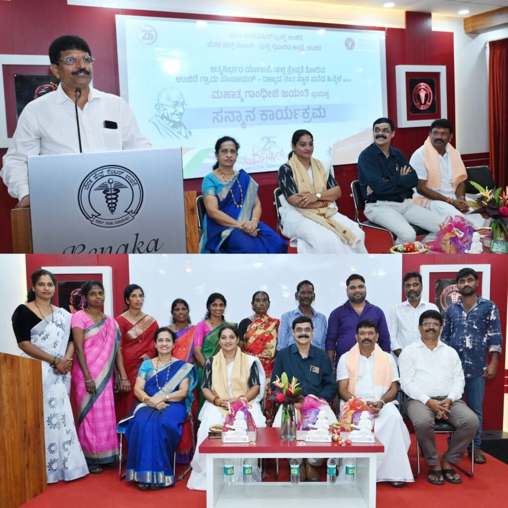 ವತಿಯಿಂದ ಆತ್ಮ ನಿರ್ಭರ ಯೋಜನೆಗಳಲ್ಲಿ ಶ್ರೇಷ್ಠತೆ ತೋರಿದ ಉಜಿರೆ ಗ್ರಾಮ ಪಂಚಾಯತ್ – ರಾಜ್ಯದ ನಂ.1 ಸ್ಥಾನ ಪಡೆದ ಹಿನ್ನಲೆಯಲ್ಲಿ ಹಾಗೂ ಮಹಾತ್ಮಾ ಗಾಂಧೀಜಿ ಜಯಂತಿ ಪ್ರಯುಕ್ತ ಸನ್ಮಾನ ಕಾರ್ಯಕ್ರಮವನ್ನು ಆಯೋಜಿಸಲಾಯಿತು.