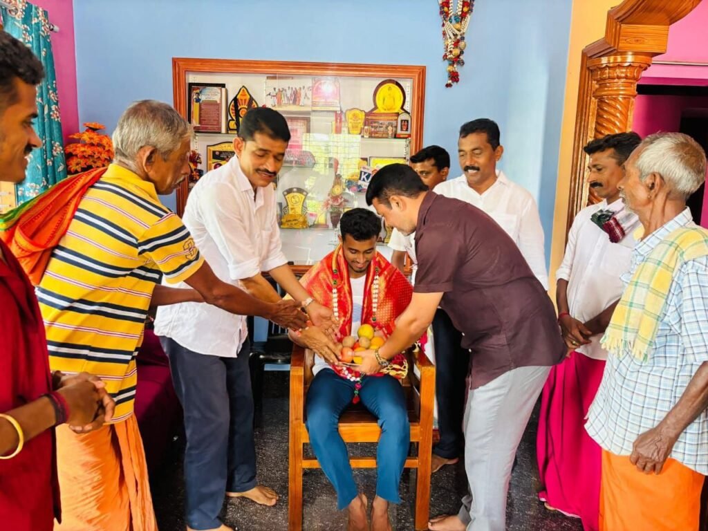 ಬೆಳ್ತಂಗಡಿ; ಒಡಿಸ್ಸಾ ರಾಜ್ಯದ ಭುವನೇಶ್ವರದಲ್ಲಿ ನಡೆದ 40ನೇ ರಾಷ್ಟ್ರೀಯ ಜೂನಿಯರ್ ಆಥ್ಲೆಟಿಕ್ಸ್ ಕ್ರೀಡಾಕೂಟ 2025ರಲ್ಲಿ 4×100 ರಿಲೇ ಸ್ಪರ್ಧೆಯಲ್ಲಿ ಕರ್ನಾಟಕವನ್ನು ಪ್ರಧಿನಿಧಿಸಿ ಚಿನ್ನದ ಪದಕವನ್ನು ಪಡೆದ ಆಳ್ವಾಸ್ ಶಿಕ್ಷಣ ಸಂಸ್ಥೆಯ ವಿದ್ಯಾರ್ಥಿ ಮರೋಡಿ ಗ್ರಾಮದ ಪಲಾರಗೋಳಿಯ ಸರ್ವಜೀತ್ ಅವರ ಮನೆಗೆ ಭೇಟಿ ನೀಡಿದ ಬೆಳ್ತಂಗಡಿ ಶಾಸಕ ಹರೀಶ್ ಪೂಂಜ ಅವರು ಅಭೊನಂದಿಸಿದರು. ಈ ಸಂದರ್ಭದಲ್ಲಿ ಜಯಂತ್ ಕೋಟ್ಯಾನ್ ಹಾಗೂ ಇತರರು ಇದ್ದರು.