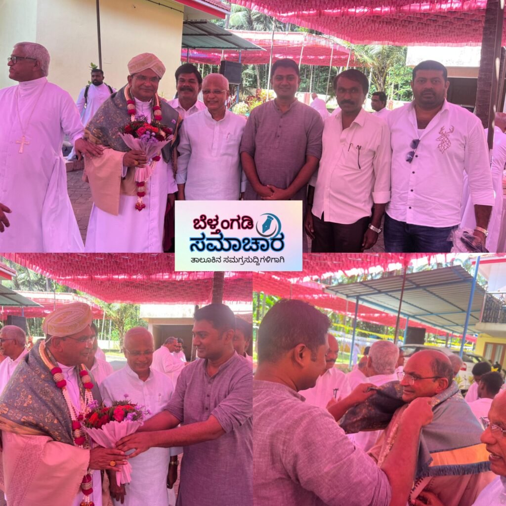 ಬೆಳ್ತಂಗಡಿ; ಬೆಳ್ತಂಗಡಿ ಧರ್ಮಪ್ರಾಂತ್ಯದ ನೂತನ ಧರ್ಮಾಧ್ಯಕ್ಷರಾಗಿ ಅಭಿಷಕ್ತರಾದ ಅ.ವಂ ಜೇಮ್ಸ್ ಪಟ್ಟೇರಿಲ್ ಅವರನ್ನು ಕೆ.ಪಿ.ಸಿ.ಸಿ ಪ್ರಧಾನ ಕಾರ್ಯದರ್ಶಿ ರಕ್ಷಿತ್ ಶಿವರಾಂ ಅವರು ಬೆಳ್ತಂಗಡಿ ಸೈಂಟ್ ಲಾರೆನ್ಸ್ ಪ್ರಧಾನ ದೇವಾಲಯಕ್ಕೆ ತೆರಳಿ ಅಭಿನಂದನೆ ಸಲ್ಲಿಸಿದರು.