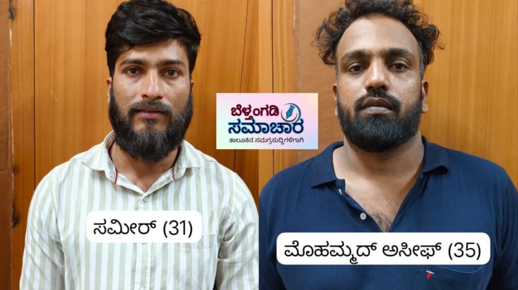 13.12.2025 ರಂದು ಸಂಜೆ, ಬಂಟ್ವಾಳ, ತುಂಬೆ ಗ್ರಾಮದ ಹನಮನಗರ ಎಂಬಲ್ಲಿ, ರಾಷ್ಟ್ರೀಯ ಹೆದ್ದಾರಿ ಬಳಿ ಯಾರೋ ವ್ಯಕ್ತಿಗಳು ಅಕ್ರಮವಾಗಿ ನಿಷೇದಿತ ಮಾದಕ ವಸ್ತುವನ್ನು ಮಾರಾಟ ಮಾಡಲು ವಶದಲ್ಲಿಟ್ಟುಕೊಂಡಿರುವ ಬಗ್ಗೆ ಮಾಹಿತಿ ಬಂದ ಮೇರೆಗೆ, ಮಂಜುನಾಥ ಟಿ, ಪೊಲೀಸ್ ಉಪ ನಿರೀಕ್ಷಕರು (ಕಾ&ಸು), ಬಂಟ್ವಾಳ ಗ್ರಾಮಾಂತರ ಪೊಲೀಸ್ ಠಾಣೆ ರವರು, ಸಿಬ್ಬಂದಿಗಳೊಂದಿಗೆ ಸದ್ರಿ ಸ್ಥಳಕ್ಕೆ ತೆರಳಿ ಪರಿಶೀಲಿಸಿದಾಗ, ರಾಷ್ಟ್ರೀಯ ಹೆದ್ದಾರಿಯ ಪಕ್ಕ ನಿರ್ಜನ ಪ್ರದೇಶದಲ್ಲಿ ಇಬ್ಬರು ವ್ಯಕ್ತಿಗಳು KA-19-MN-3664 ನೇ ನೊಂದಣಿ ಸಂಖ್ಯೆಯ ಕಾರು ಮತ್ತು KA-19-AE-0166 ನೇ ನೊಂದಣಿ ಸಂಖ್ಯೆಯ ಆಟೋ ರಿಕ್ಷಾದ ಬಳಿ ಅನುಮಾನಾಸ್ಪದವಾಗಿ ನಿಂತುಕೊಂಡಿದ್ದು, ಅವರುಗಳನ್ನು ಹಿಡಿದು ವಿಚಾರಿಸಲಾಗಿ, ಒಬ್ಬಾತ ಬಂಟ್ವಾಳ ತುಂಬೆ ನಿವಾಸಿ ಸಮೀರ್ (31) ಹಾಗೂ ಮತ್ತೋರ್ವ ಬಂಟ್ವಾಳ ಗೂಡಿನ ಬಳಿ ನಿವಾಸಿ ಮೊಹಮ್ಮದ್ ಅಸೀಫ್ (35) ಎಂಬುದಾಗಿ ತಿಳಿಸಿರುತ್ತಾರೆ. ವಿಚಾರಣೆಯ ವೇಳೆ ತಾವುಗಳು ಅಧಿಕ ಹಣಗಳಿಸುವ ಉದ್ದೇಶದಿಂದ ನಿಷೇಧಿತ ಮಾದಕವಸ್ತುವಾದ ಗಾಂಜಾ ಮಾರಾಟಕ್ಕೆ ಯತ್ನಿಸುತ್ತಿರುವುದಾಗಿ ಒಪ್ಪಿಕೊಂಡಿದ್ದು, ತಪಾಸಣೆ ನಡೆಸಿದಾಗ ಕಾರಿನಲ್ಲಿ 450 ಗ್ರಾಂ. ಗಾಂಜಾ ಹಾಗೂ ರಿಕ್ಷಾದಲ್ಲಿ 360 ಗ್ರಾಂ ಗಾಂಜಾ ಪತ್ತೆಯಾಗಿರುತ್ತದೆ.