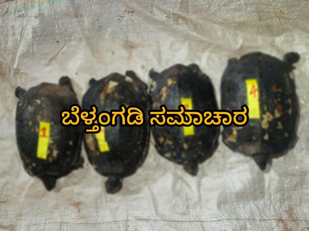 ಬೆಳ್ತಂಗಡಿ; ಅಜ್ಜಿಯ ತಿಥಿ ಕಾರ್ಯಕ್ರಮಕ್ಕೆ ಪದಾರ್ಥ ಮಾಡಿ ಬಡಿಸಲು ಅಜ್ಜಿಗೆ ಇಷ್ಟವಾದ ಆಮೆಯನ್ನು ನದಿಯಲ್ಲಿ ಅಕ್ರಮವಾಗಿ ಬೇಟೆಯಾಡಿ ಮಾಂಸ ಮಾಡಲು ಪ್ರಯತ್ನಿಸುತ್ತಿದ್ದಾಗ ಬೆಳ್ತಂಗಡಿ ಪೊಲೀಸರು ದಾಳಿ ಮಾಡಿ ನಾಲ್ಕು ಆಮೆ ಸಮೇತ ನಾಲ್ಕು ಮಂದಿ ಆರೋಪಿಗಳನ್ನು ಬಂಧಿಸಿದ್ದಾರೆ.