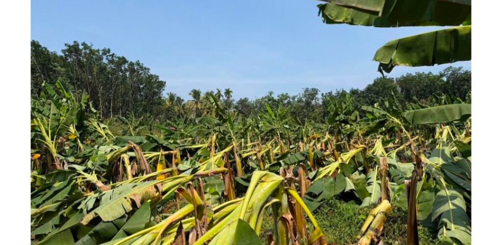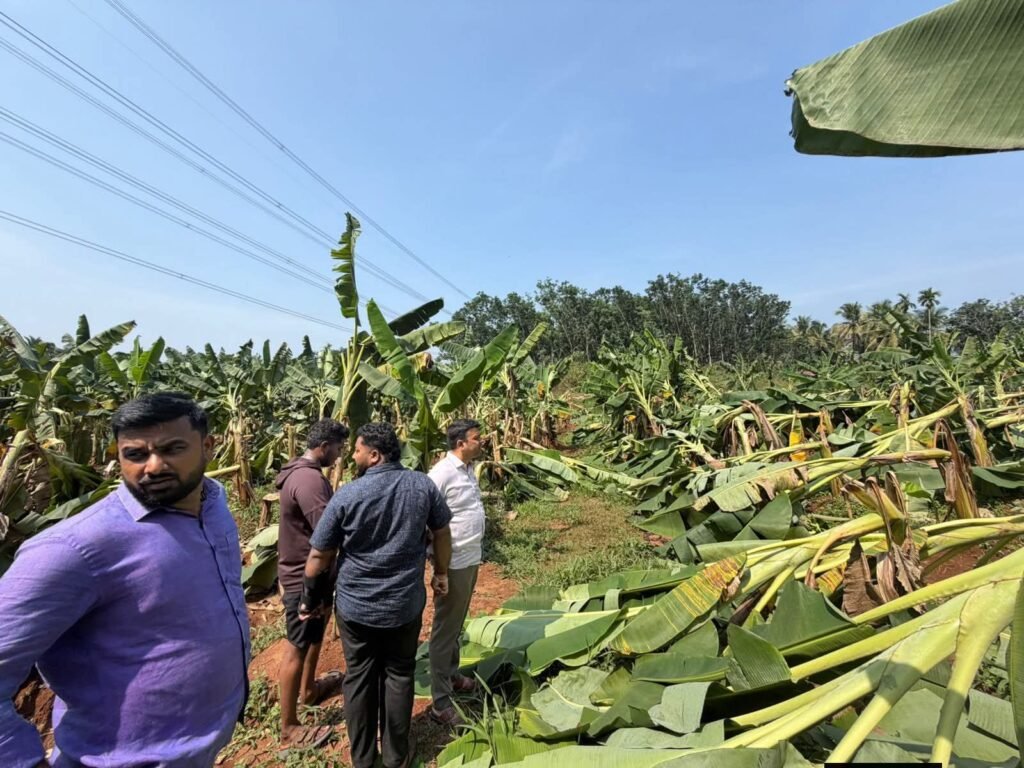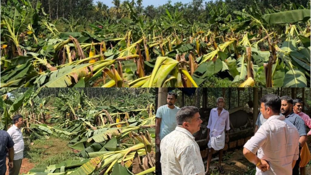ತೋಟತ್ತಾಡಿ ಗಾಳಿ ಮಳೆಗೆ ವ್ಯಾಪಕ ಕೃಷಿ ಹಾನಿ ಶಾಸಕ ಹರೀಶ್ ಪೂಂಜ ಭೇಟಿ ಪರಿಶೀಲನೆ