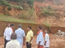 ರೆಖ್ಯ ಗುಡ್ಡ ಕುಸಿತದಿಂದ ಹಾನಿಗೀಡಾದ ದುರ್ಗಾಪರಮೇಶ್ವರಿ ದೇವಸ್ಥಾನಕ್ಕೆ ಸಂಸದರು, ಶಾಸಕರ ಭೇಟಿ ಪರಿಶೀಲನೆ